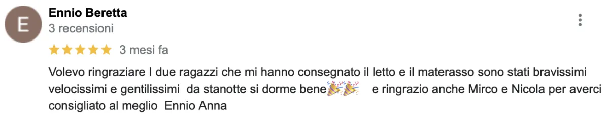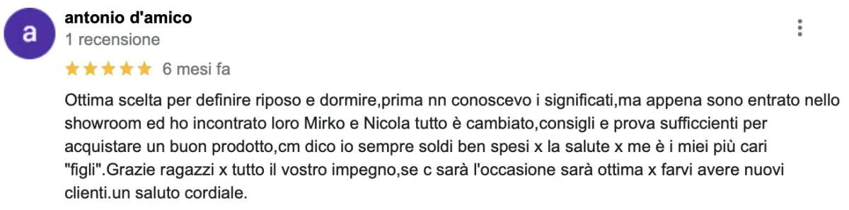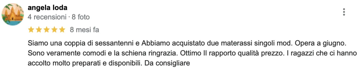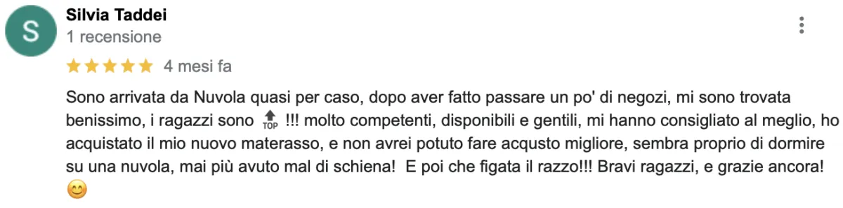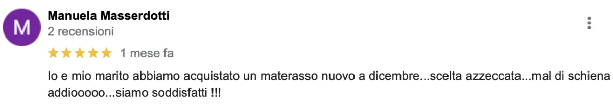Ecco cosa pensano alcune delle 1607 persone che hanno scelto il materasso Nuvola per dormire un sonno più profondo, alleviare i dolori a schiena e cervicale e godere di maggior energia durante la giornata.